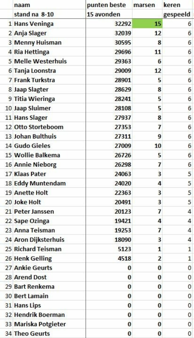 Vanwege de corona pandemie hebben we in het seizoen 2020 - 2021 slechts 6 keer gespeeld